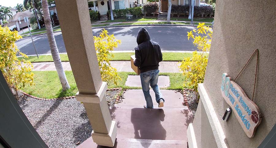 - All-encompassing camera view: You will benefit from seeing the whole picture, and that includes the faces of visitors at your entry and boxes on the walkway below. Options with ultra-wide 180-degree field of vision provide a total perspective.